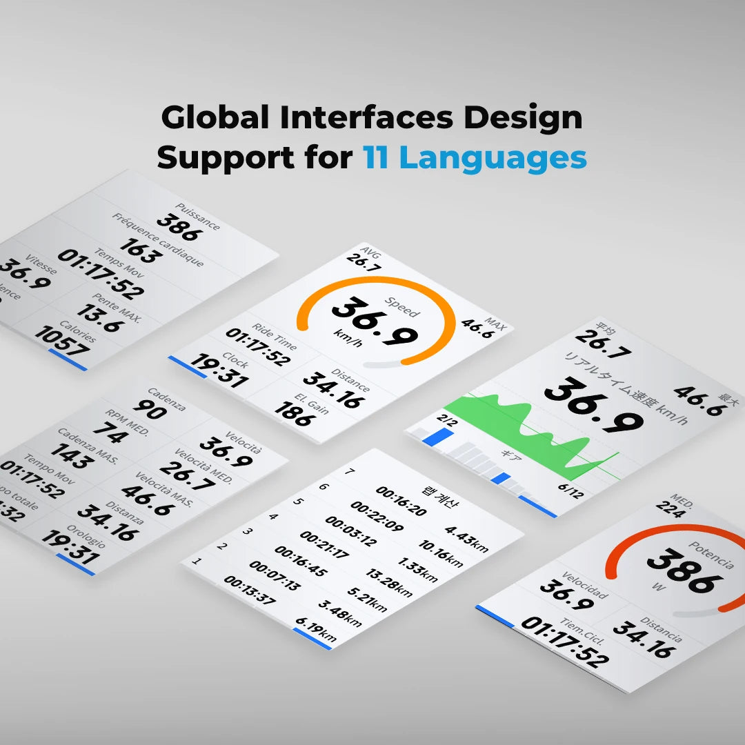 📊 108 Data Items, 10 Pages, 29 Layouts – Customize your cycling metrics with graphs, circular dials, line charts, and bar charts.