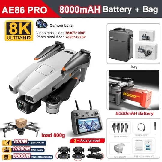 12 reviews+ 2 moreAE86 PRO Max+ GPS Drone – 8K HD Camera, 3-Axis Gimbal, Obstacle Avoidance, FPV Quadcopter 🚀 Take your aerial photography to the next level with the AE86 PRO Max+ GPS Drone! This high-performance quadcopter features an...Regular price From €539,99Regular price From €539,99 -