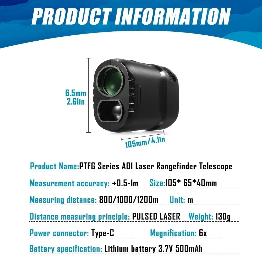 - Range options: 800m / 1000m / 1200m (±1m accuracy)